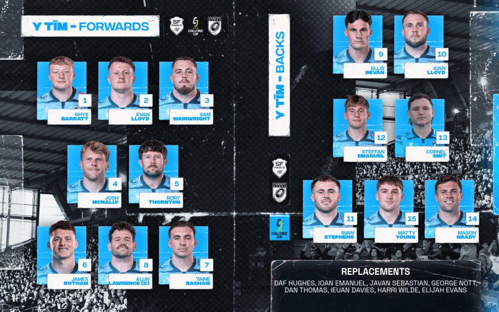 Matty Young; Mason Grady, Cornel Smit, Steffan Emanuel, Iwan Stephens; Ioan Lloyd, Ellis Bevan; Rhys Barratt, Evan Lloyd, Sam Wainwright, Josh McNally, Rory Thornton, James Botham, Taine Basham, Alun Lawrence (capt).