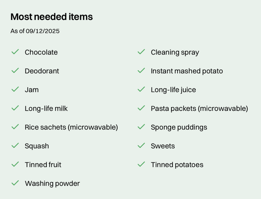 Cardiff Foodbank provide 3-day emergency food and essential parcels to people in need in the capital, working with 190+ agencies and charities.