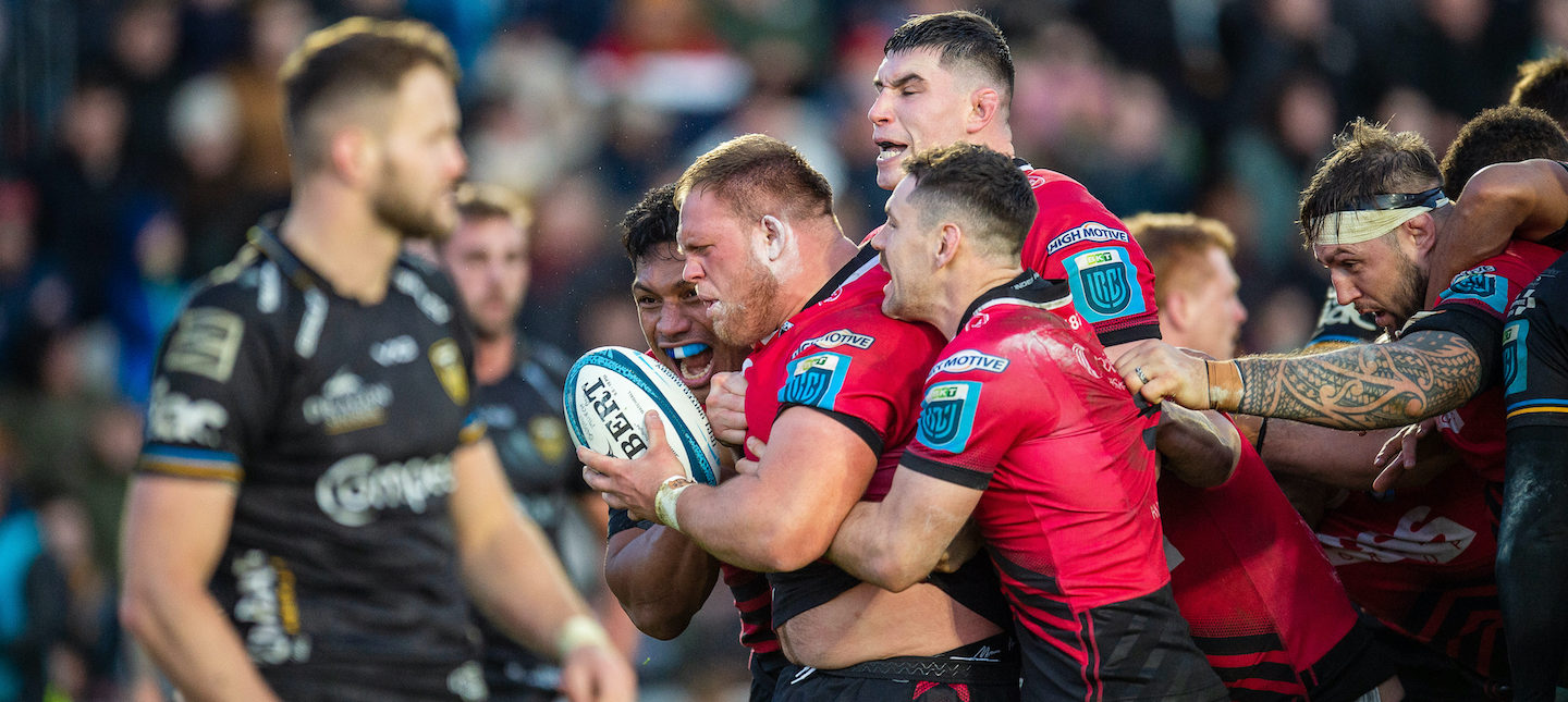 With just seconds left on the clock, Ellis Jenkins swooped for a turnover penalty, Jarrod Evans kicked right into the corner with the narrowest of angles and following a power-packed charge from Liam Belcher, Corey Domachowski was on hand to bludgeon his way over the whitewash for a match-winning bonus-point try.
